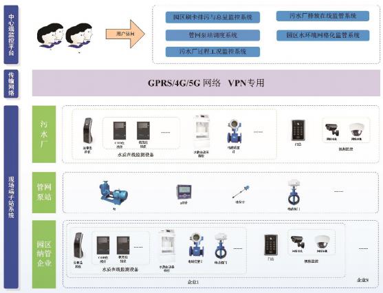 工业园区废水排放在线立体防控体系主要分为三部分构成:现场端、传输层、应用层。